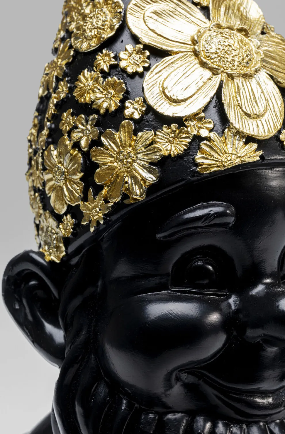 Koop er zeven en je kunt een geweldig sprookje recreëren! Dan hebben we alleen nog iemand nodig die sneeuwwitje zou kunnen spelen…… Wie is de prinses in het huis? Dit dwergje is een prachtig decofiguur voor bij jou thuis. In zijn zwarte kleur en met zijn glanzende, gouden, bloemrijke hoed staat hij trots voor je klaar. Creëer prachtige arrangementen met andere formaten, kleuren en varianten van deze dwerg, die beschikbaar zijn op KARE.nl.