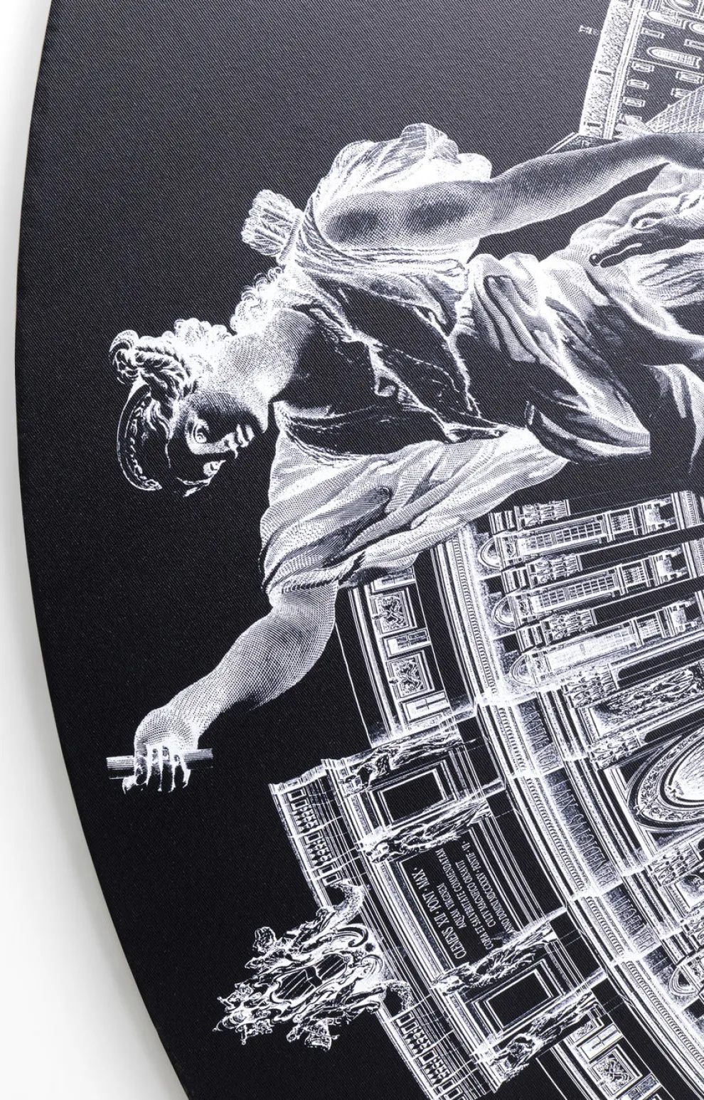 Foto voor aan de muur. decofiguur of kunstwerk? Met deze exclusieve wanddecoratie kun je twee decoratie-uitdagingen tegelijk aan gaan. Het grote, ronde figuur vult lege muren op met een hoog contrast fotomotief in zwart en wit. En het getransformeerde motief met zijn historische gebouwen en sculpturen onderscheid zich als een kenner van cultuur en individualisme.