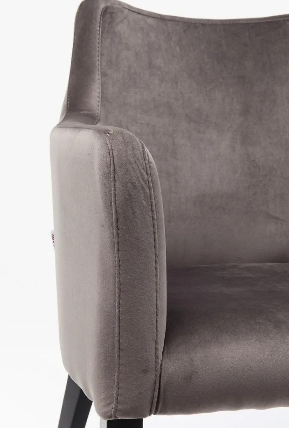 Deze stoel is ondertussen een echte klassieker. Net zo elegant als een cocktail-stoel, net zo comfortabel als een fauteuil en erg huiselijk en uitnodigend dankzij de zachte, fluwelen bekleding. De comfortabele armleuningen, die soepel overgaan in de rugleuning, garanderen veel knusse uren waar je hem ook gebruikt: als stoel bij de eettafel, aan je bureau of als gast stoel in je woonkamer.