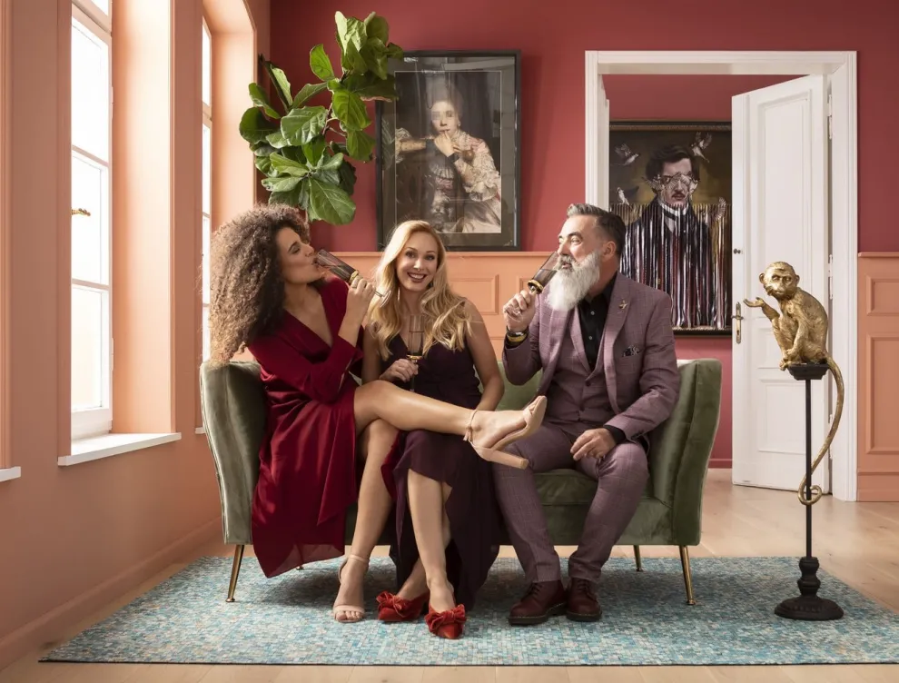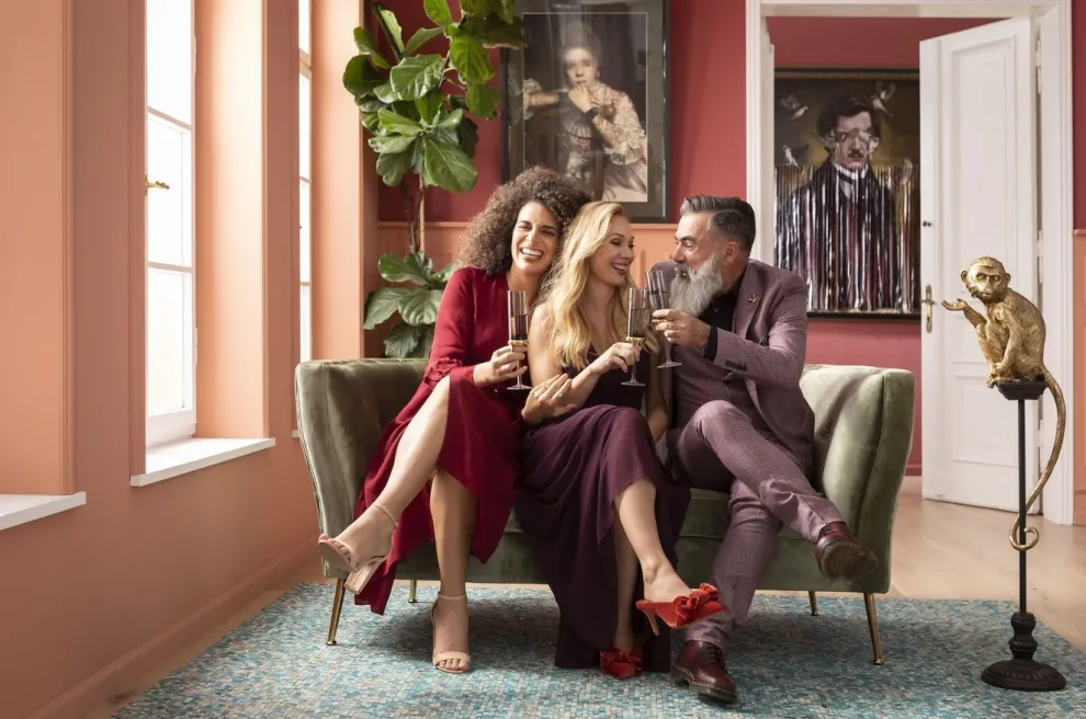 De Rimini bank voelt zich thuis in de bar van een groot hotel. Dankzij zijn fijne formaat, past hij echter ook in kleinere ruimtes. Elegant: de saliekleurige fluwelen hoes en filigrane poten.