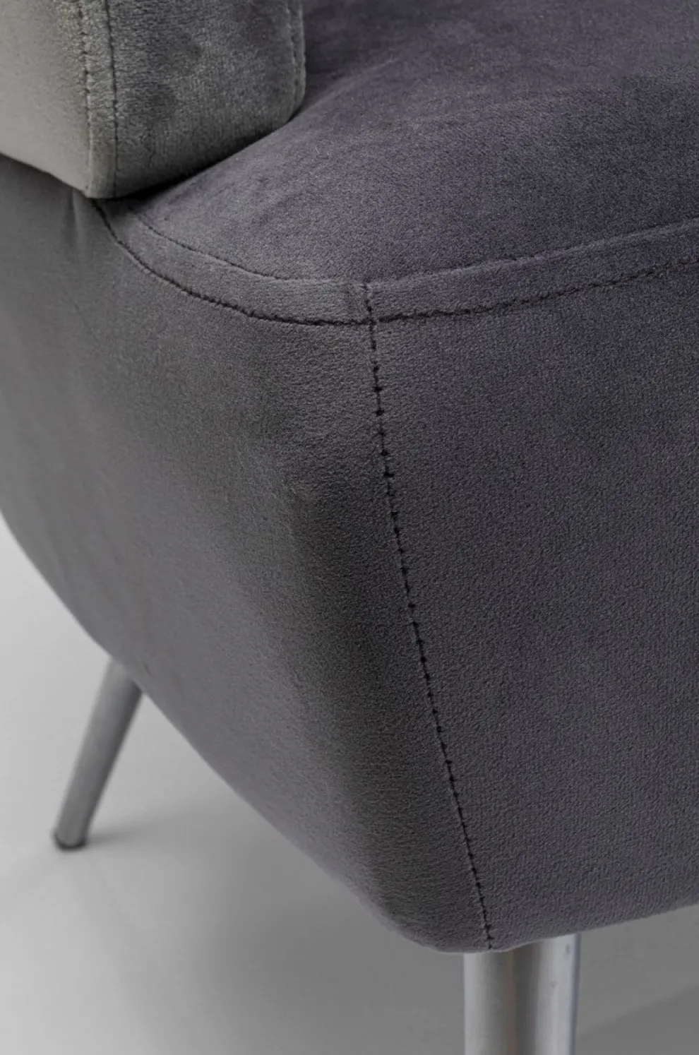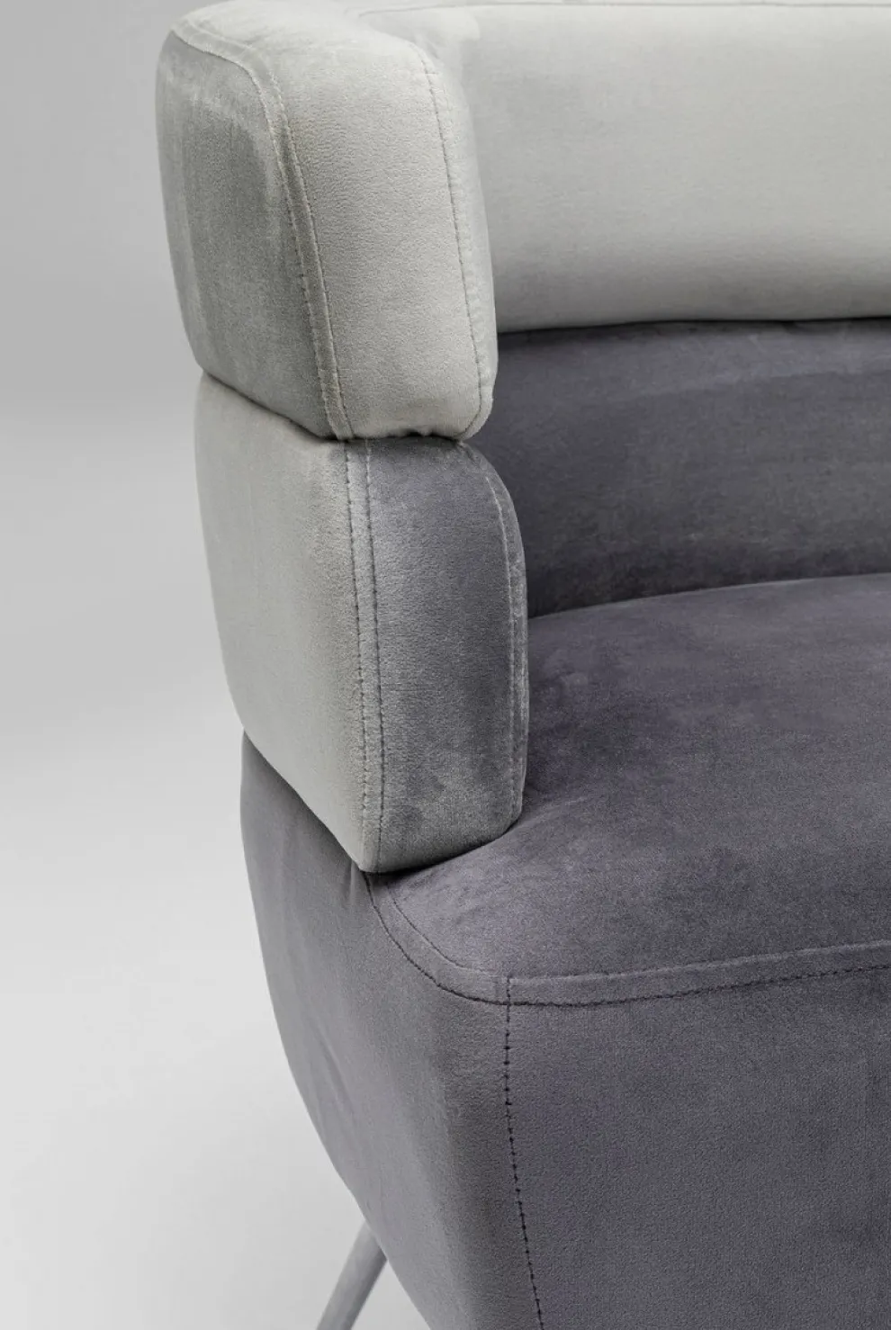 De sierlijke fluwelen bank Sandwich in drie harmonieuze kleuren grijs maakt indruk met zijn harmonieuze vormen, sierlijke formaat en uitzonderlijke ontwerp.