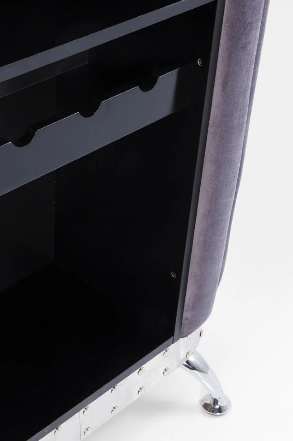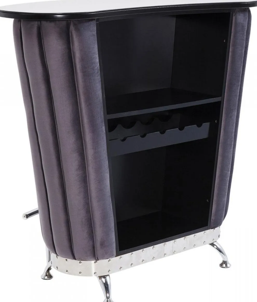 Terwijl anderen nog steeds discussiëren over waar ze heen gaan, ben jij er allang gearriveerd – omdat de meest exclusieve favoriete bars zich in jouw woonkamer bevinden. Met zijn chroom poten, een glimmende, gestoffeerde voorkant en een toonbank gemaakt van zwart glas zou het carrière gemaakt kunnen hebben in het oude Hollywood. Proost! We hebben ook bijpassende barkrukken beschikbaar.