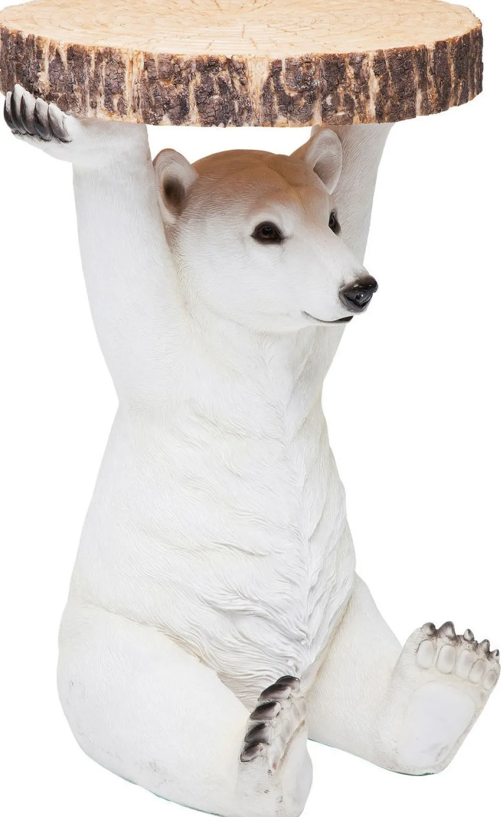 Ik wil een ijsbeer zijn – Deze bijzettafel is gebaseerd op een comic. Hij maakt iedere bewonderaar aan het lachen met zijn originele design. En hij is net zo betrouwbaar als iedere andere viervoetige vriend. Deze ijsbeer tafel ziet er niet alleen goed uit, maar is ook robuust ondanks zijn lichte gewicht van 4kg. Een echte eye-catcher voor de bar, de woonkamer of iedere andere plek waar je het plaatst. Materiaal: polyresin.