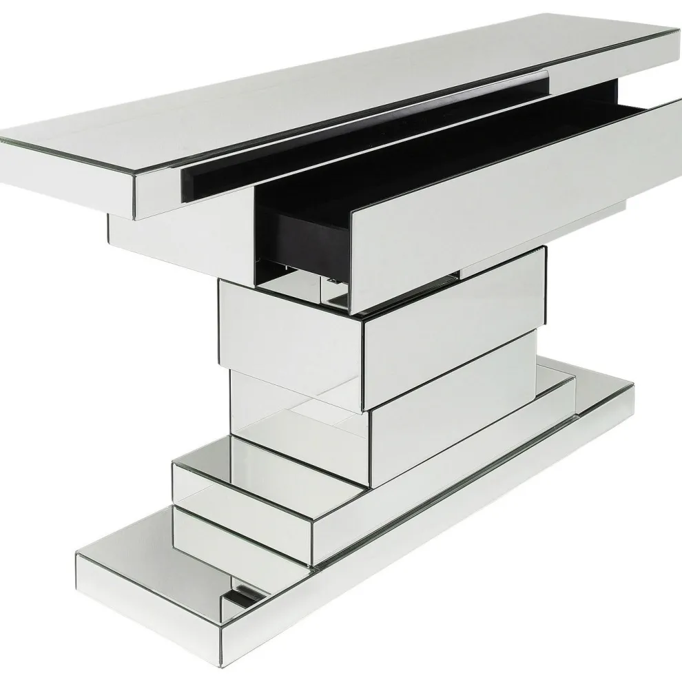 Gemaakt van hoogwaardig MDF en glas, biedt deze console niet alleen een eigentijdse uitstraling, maar ook duurzaamheid om de tand des tijds te doorstaan. Zowel het blad als de poten zijn vervaardigd uit MDF en glas, wat zorgt voor een uniforme en luxueuze uitstraling.