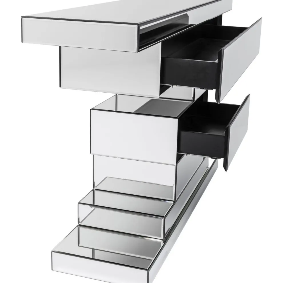 De Kare Console Brick Mirror combineert moeiteloos verschillende stijlelementen, waaronder modern, eclectisch en glamour. De glanzende afwerking van het glas geeft het een glamoureuze uitstraling, terwijl de strakke lijnen en vormen een moderne esthetiek behouden.