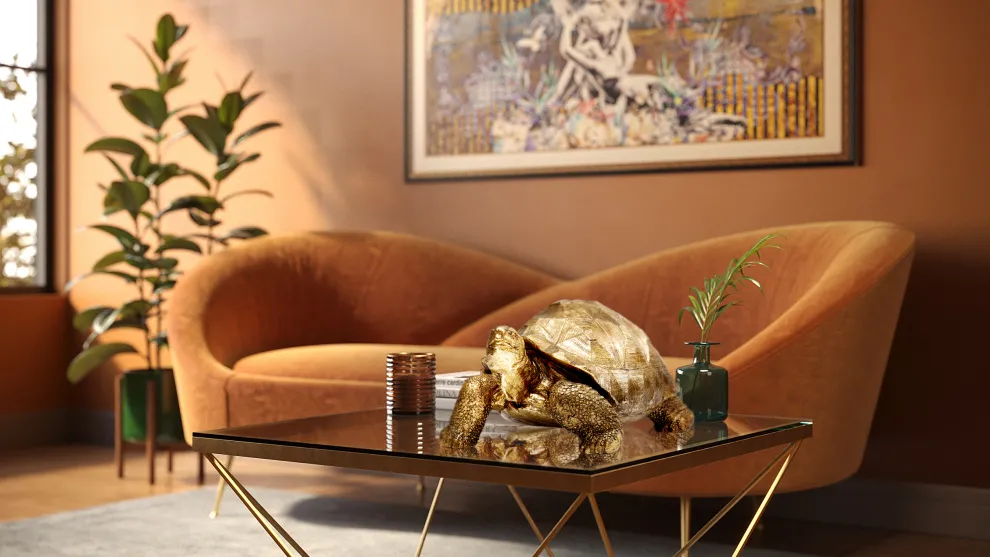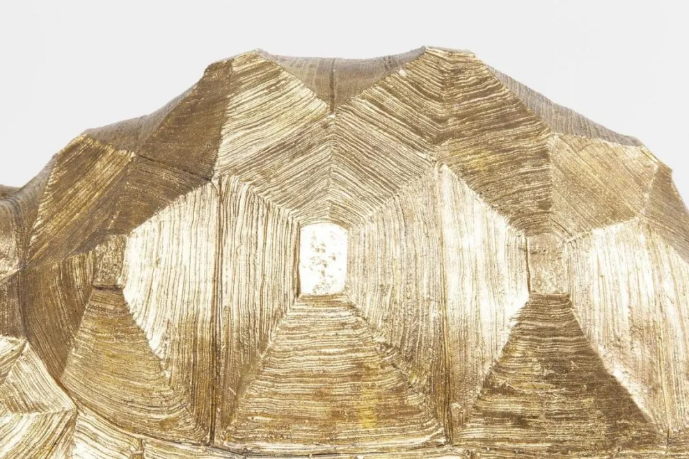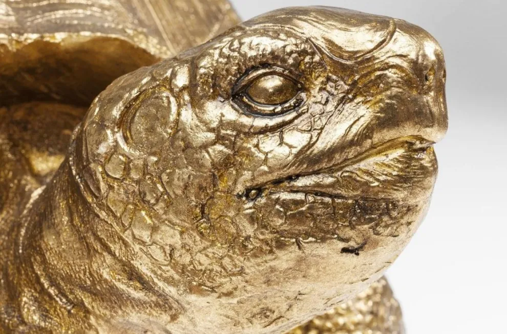 Glanzend staat dit slome diertje voor je klaar. Met zijn gouden uiterlijk en zijn vele details past hij perfect bij jou in huis. Bijvoorbeeld prachtig in combinatie met andere gouden accessoires of meubels, of andere dierenfiguurtjes. Doordat deze schildpad is gemaakt van polyresin, is hij extra bestendig. Met zijn formaat 60x40x32 past hij perfect op een dressoir of boekenschap. Wil je net wat meer? We hebben deze schildpad ook in een groter formaat.
