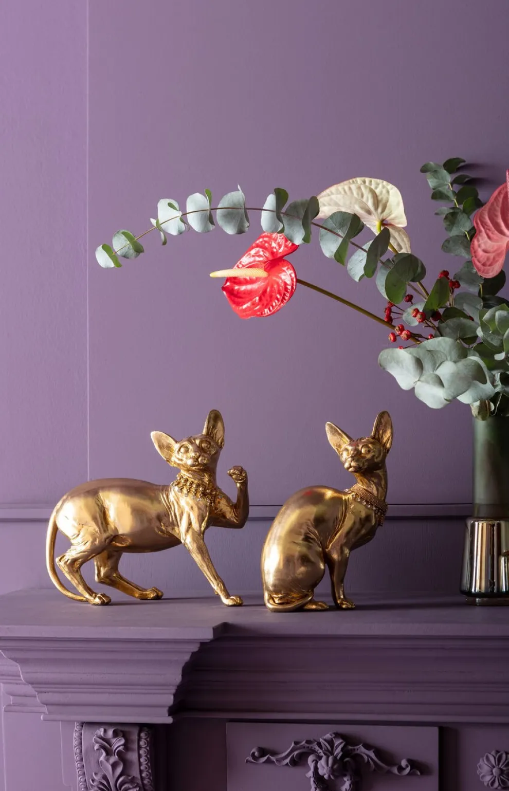 Decofiguur Sitting Cat Audrey Gold 27cm