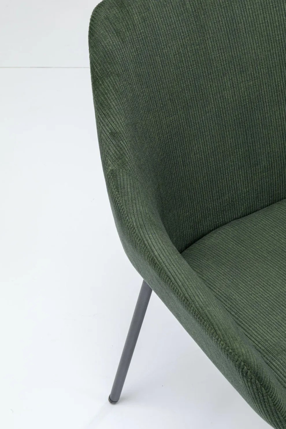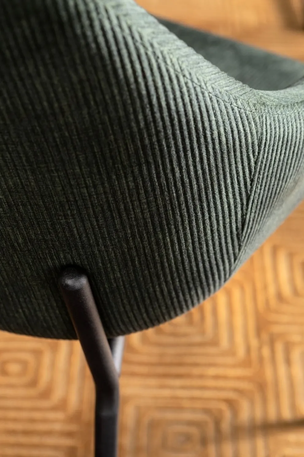 Klassiek design gecombineerd met de moderne look: met zijn flatterende donkergroene bekleding is deze gestoffeerde stoel in schelp-vorm een echt ‘style-statement’. Het smalle stalen frame en de ergonomische zitting creëren een elegant silhouet. Deze draaibare stoel zorgt voor een strakke look in jouw eetkamer, woonkamer of op kantoor – overal eigenlijk wel. En deze stoel is ook nog eens comfortabel.