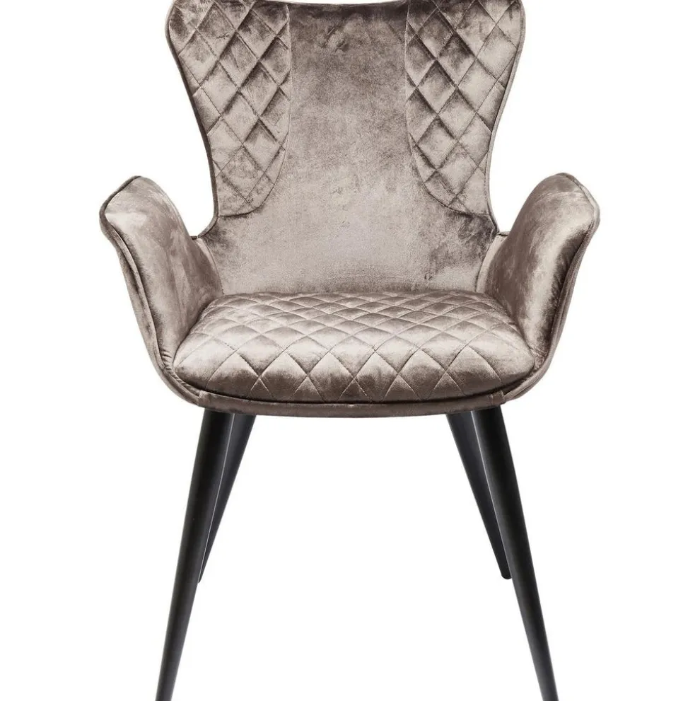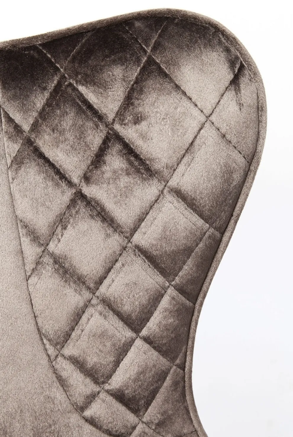 Deze stoel heeft veel overgenomen van de fauteuil – de wijde gebogen rugleuning, de stof, de fluwelen bekleding – uiteindelijk, hoort de stoel ook erg comfortabel te zijn. Het diamanten stikwerk ziet er ook nog eens luxueus uit. Deze stoel is een persoonlijk uitnodiging!
