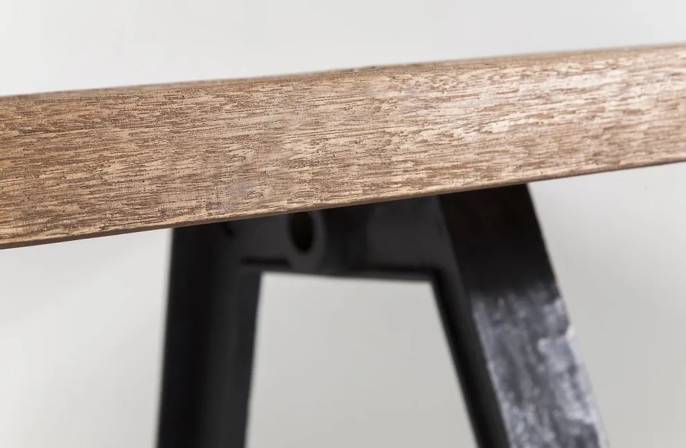 Een originele tafel gemaakt van stevig hout en behouden spoorrails – Een all-round, uitzonderlijke tafel. Het goed-gedragen tafelblad met zijn scheuren bestaat uit oud teak spoorbielzen en het frame van een behouden spoorlijn. Typisch KARE: afgedankte materialen krijgen een nieuw leven in de vorm van originele meubels. We houden ervan, wanneer het design zowel prachtig als duurzaam is. We hebben een rijke collectie aan andere spoorweg artikelen: Instructies voor het onderhoud: Iedere zes maanden verzorgen met lijnzaadolie of wax voor hout. Lijnzaadolie voedt het hout, wax biedt een beschermlaag. Het frame heeft geen speciale verzorging nodig. Afmetingen: 210x100cm. Materiaal: gegoten staal, hergebruikt hardhout (shala en haldu bomen etc.) geïmpregneerd en verzorgd met wax.