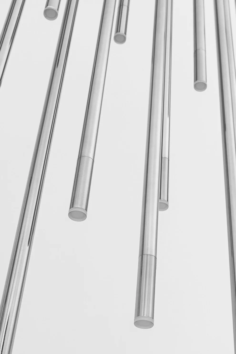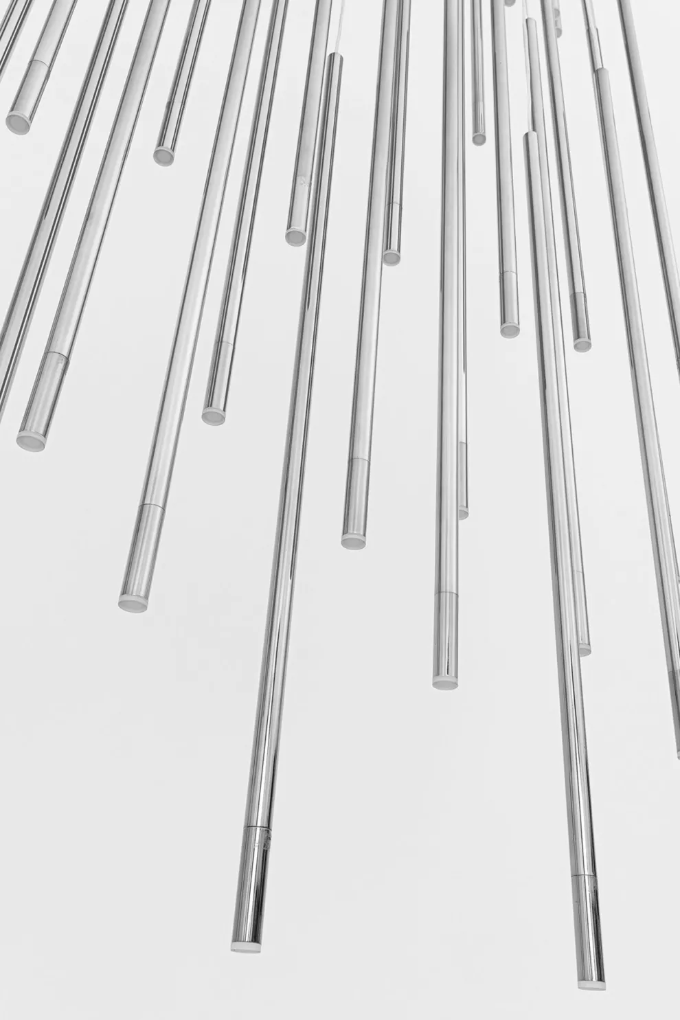 Deze lamp is niet alleen een lichtbron, het is een kunstwerk dat toevallig ook je kamer verlicht. Met een breedte van 154 cm en een hoogte van maar liefst 320 cm (ja, je leest het goed, dat is bijna zo hoog als een giraffe op stelten) is deze lamp een echte blikvanger. En met een diepte van 21 cm en een gewicht van 40 kg weet je dat het serieus business is.