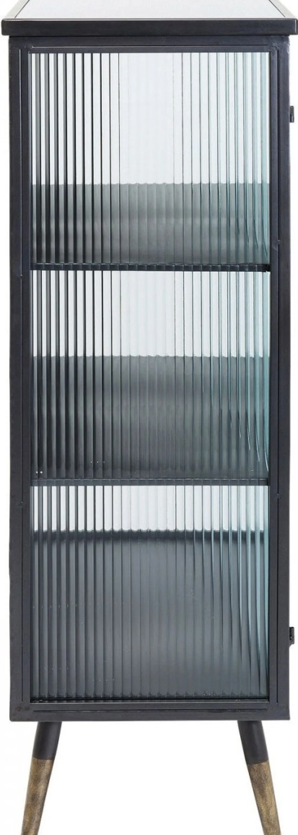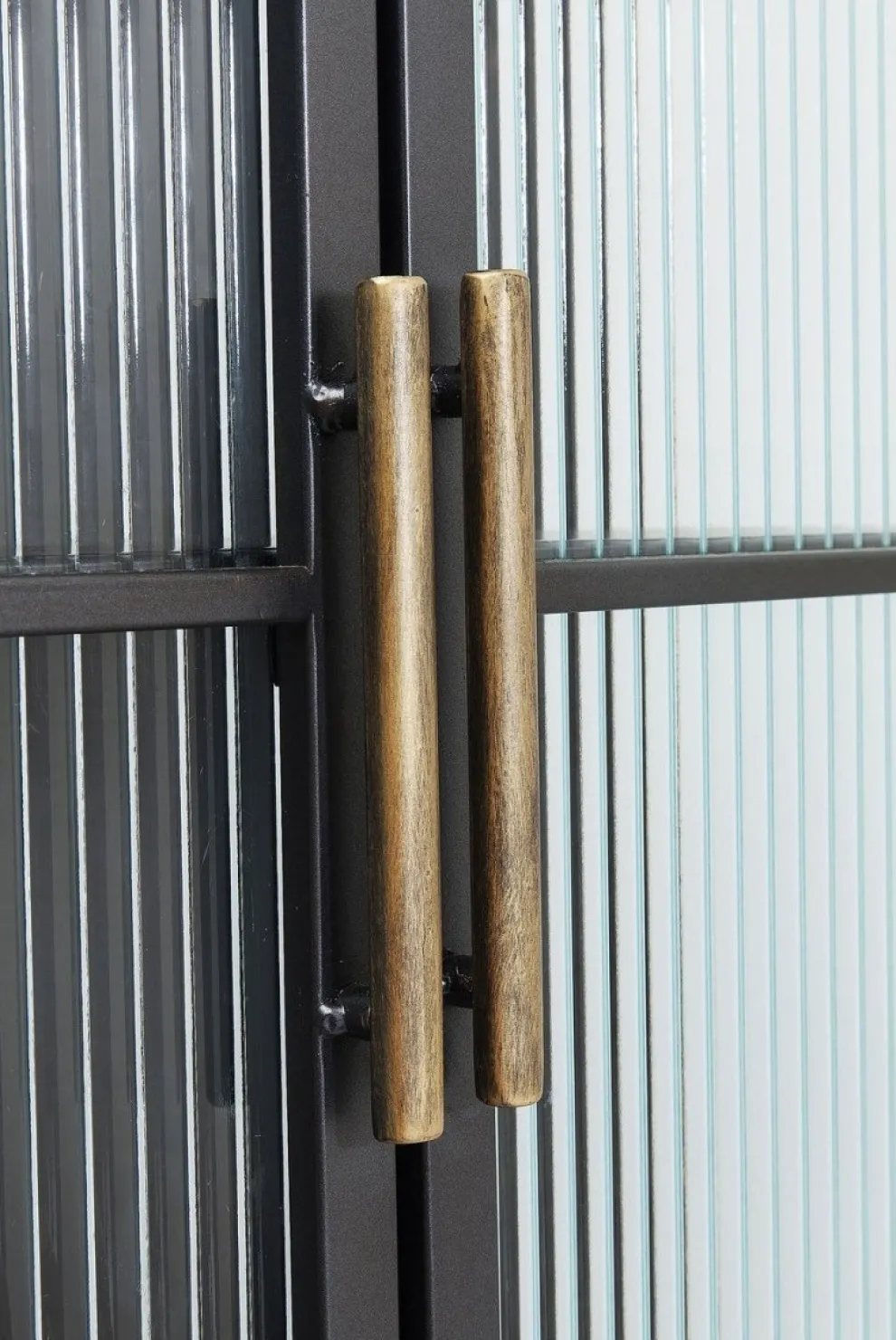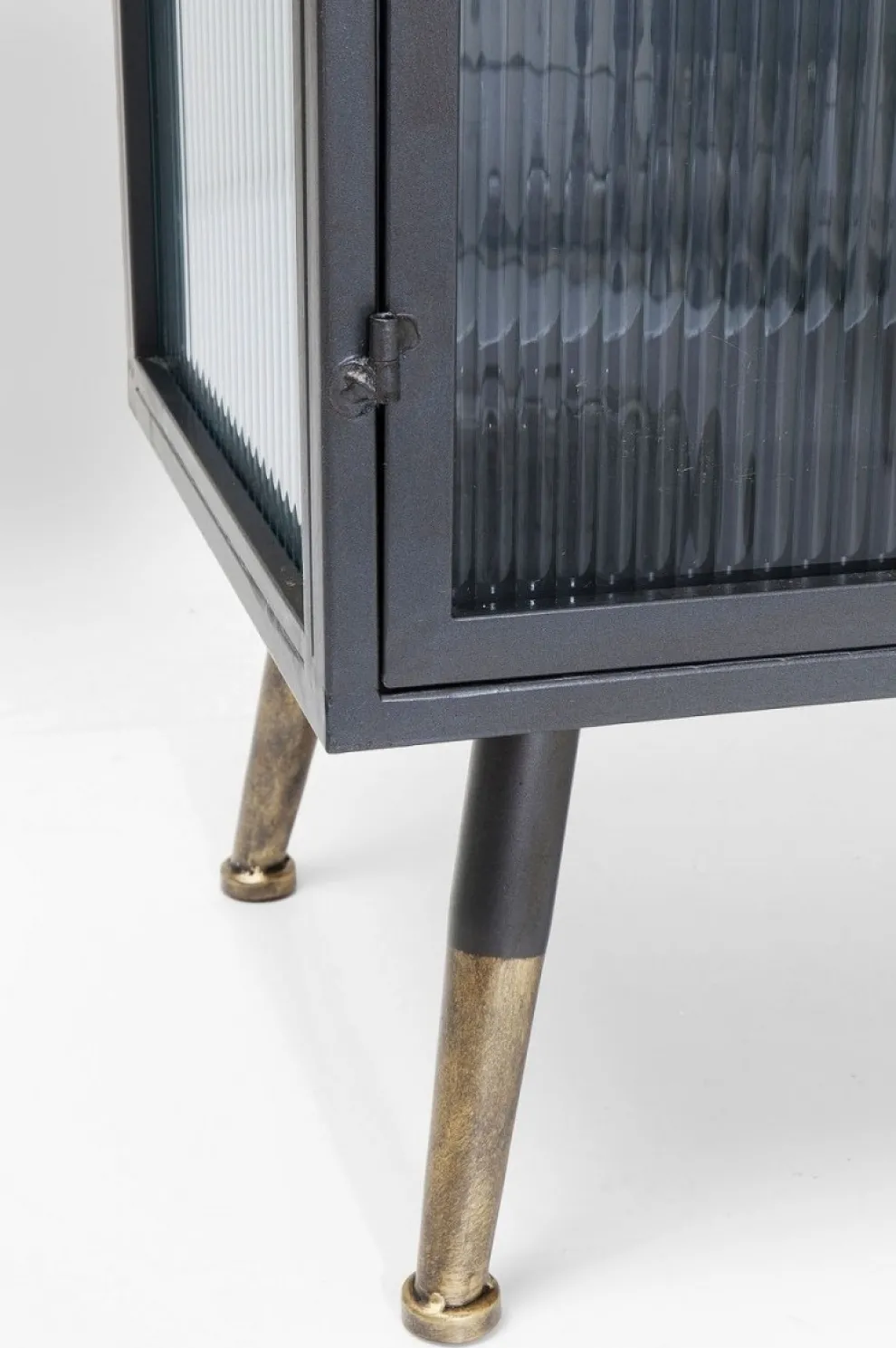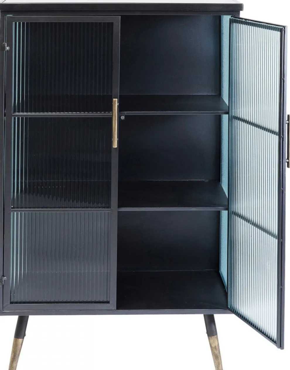Gelakt staal en glas – dit zijn de ingrediënten die de casual look van deze kabinetkast compleet maken. Terwijl het frame van dit opberg wondertje gemaakt is van staal en doet denken aan een industrieel ontwerp, zijn de voorkanten en zijkanten gemaakt van gegraveerd glas – dit geeft het kabinet een bepaalde elegantie en lichtvoetigheid. De La Gomera serie, die verschillende kabinetkasten en ladekasten bevat, wordt gekarakteriseerd door een combinatie van staal en glazen materialen, uitzonderlijke lijnen en enigszins uitlopende poten.