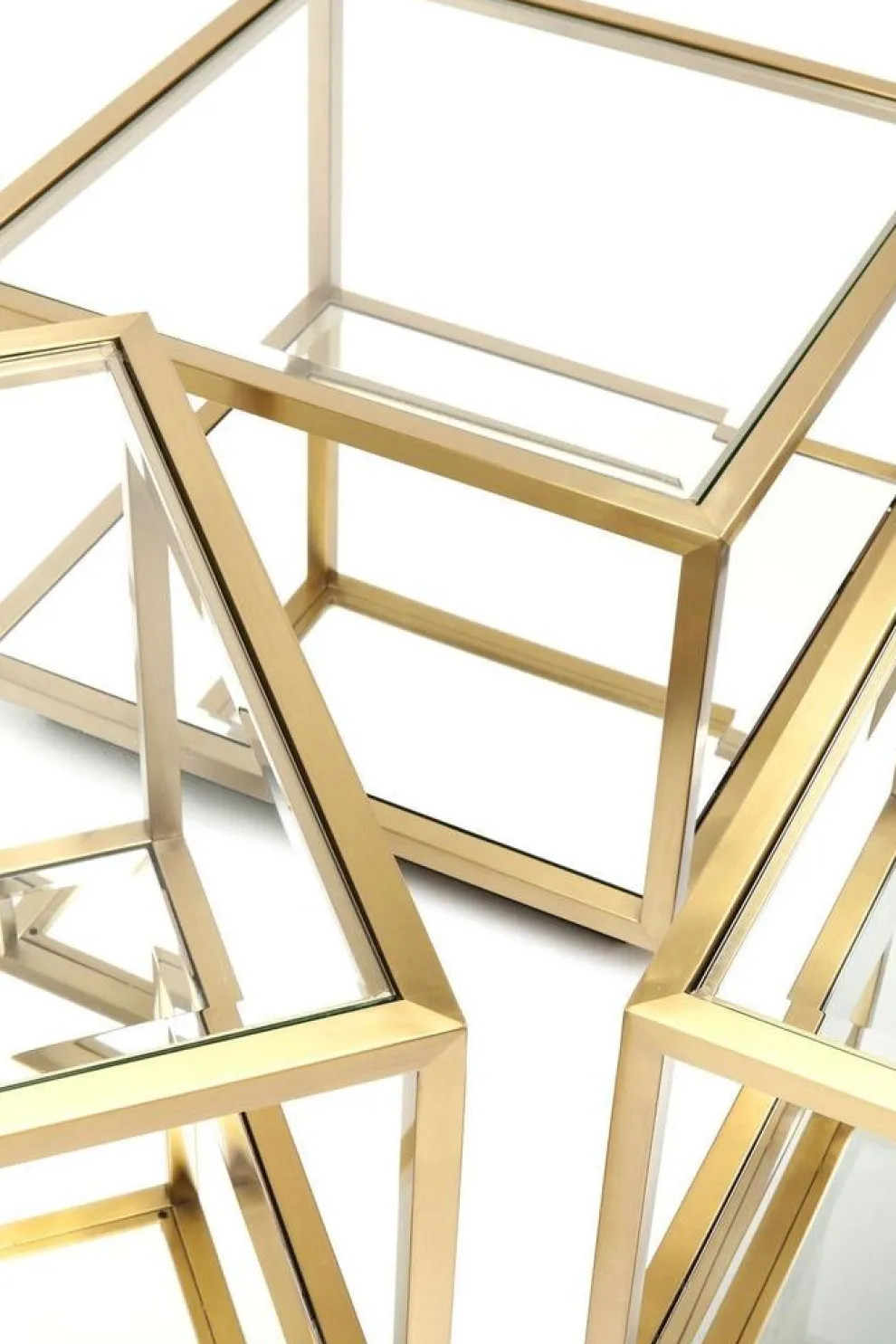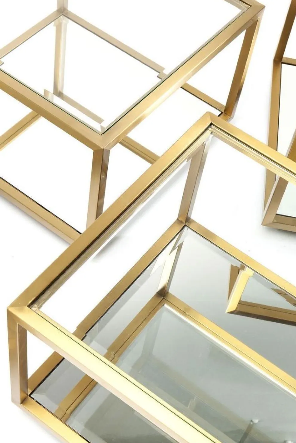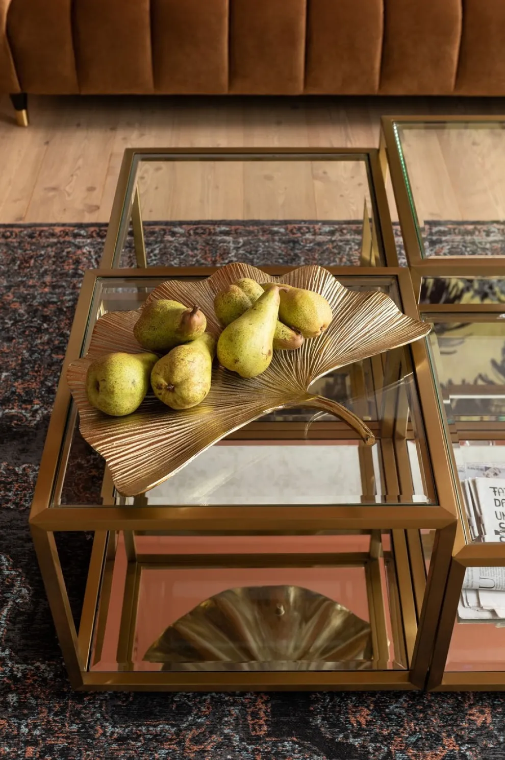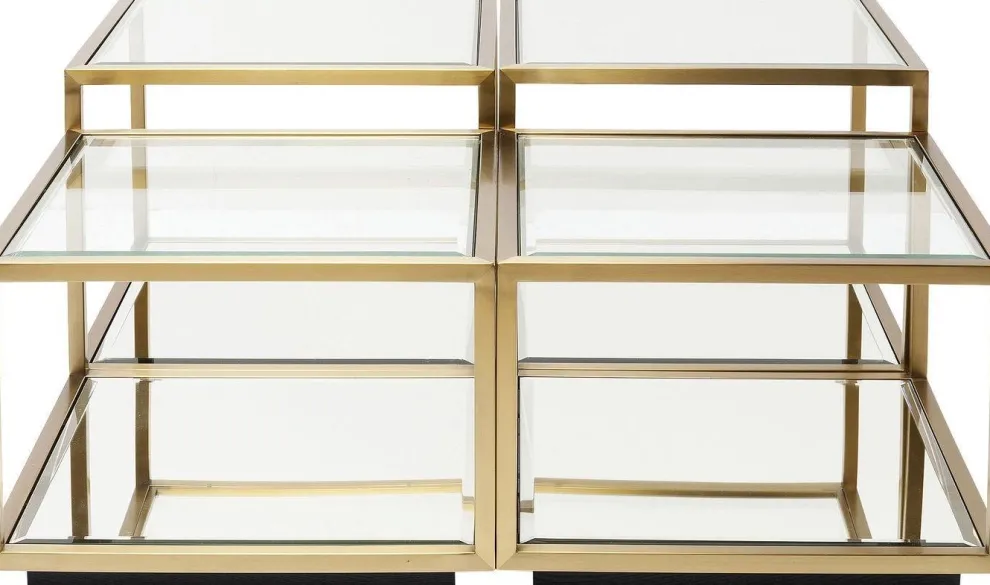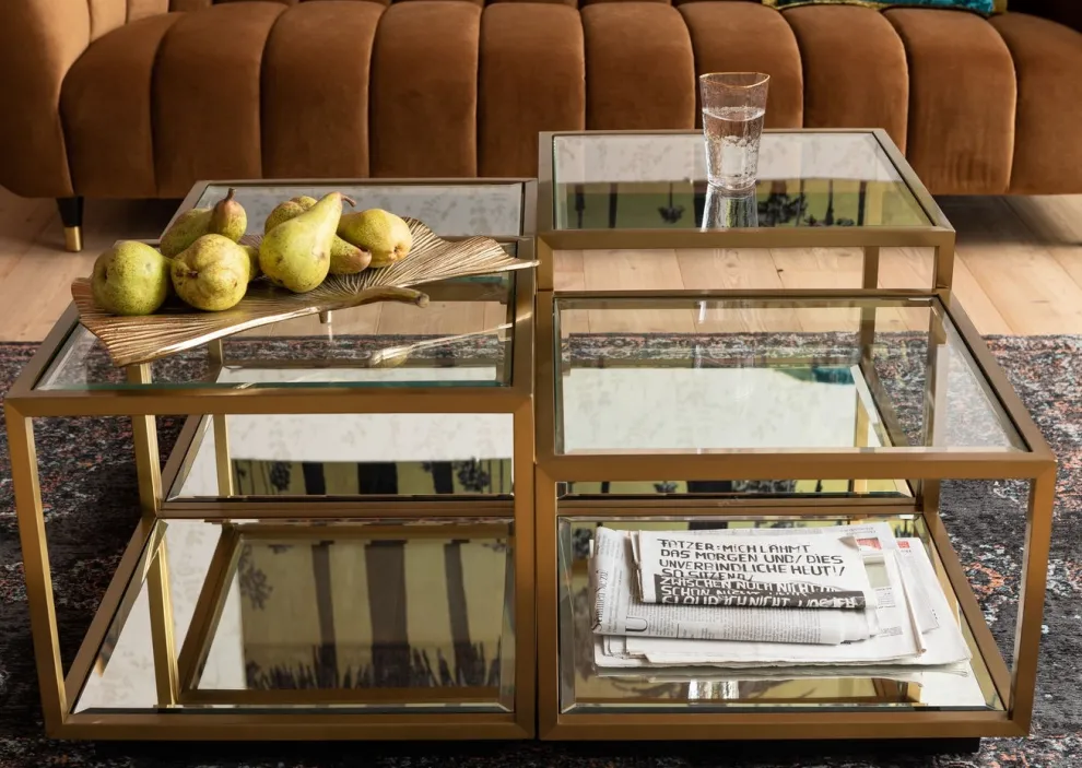 Één tafel, eindeloze mogelijkheden! Luigi bestaat uit vier glazen kubus-vormen, die samen één grote salontafel vormen – maar ook individueel of in duo’s verdeelt kunnen worden over de ruimte.