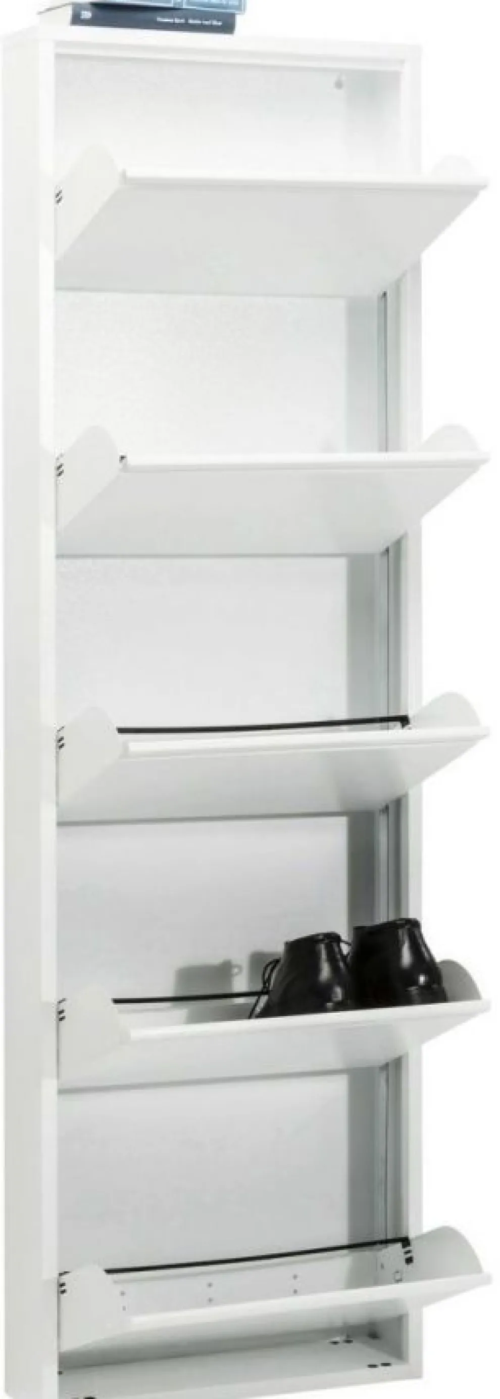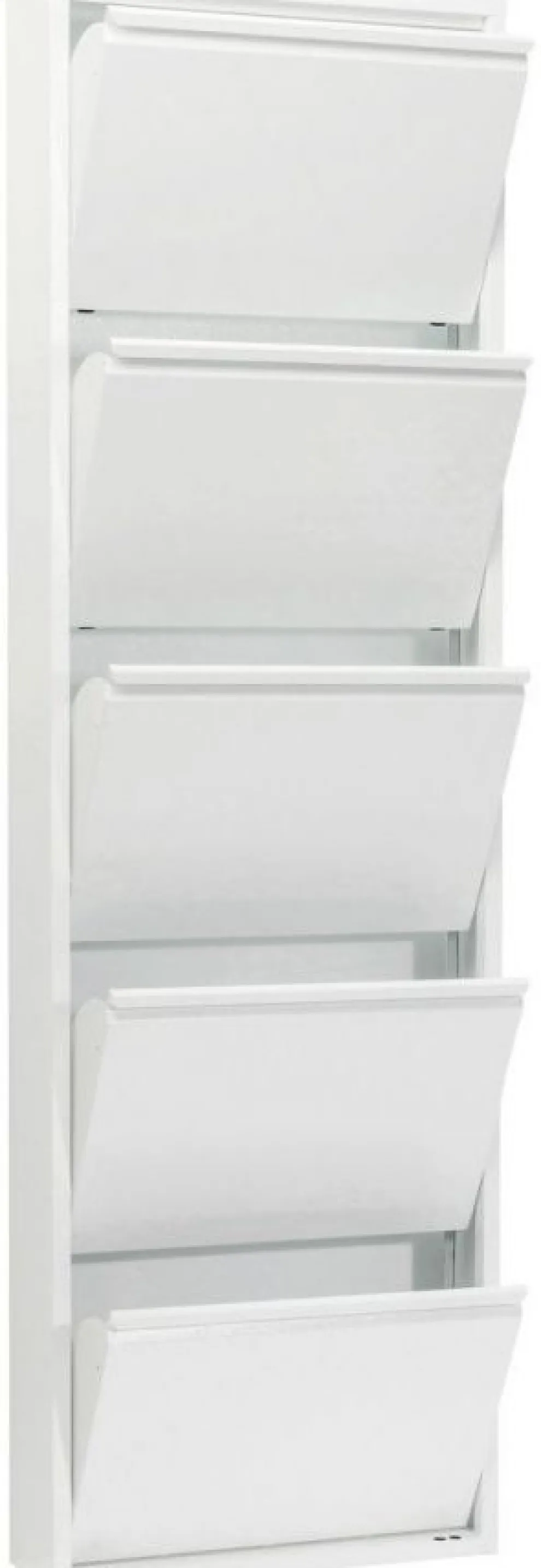 In een smaakvol ingerichte hal staat een prachtig stuk design dat niet alleen functioneel is, maar ook een verhaal vertelt. Het is de Schoenenkast Caruso 5 White van Kare, een meubelstuk dat de wereld van schoenenopslag naar een geheel nieuw niveau tilt.