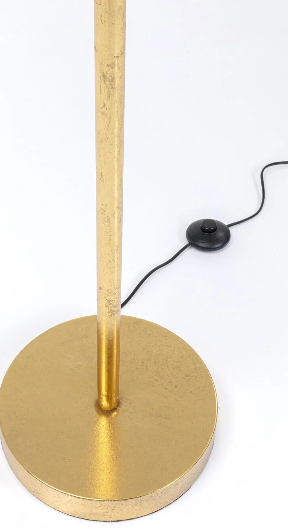 De vloerlamp is vervaardigd van hoogwaardig staal, met een elegante gouden afwerking die een vleugje luxe toevoegt aan je interieur. De lampenkap is gehuld in een warme gele kleur, waardoor een zachte en uitnodigende gloed wordt gecreëerd.