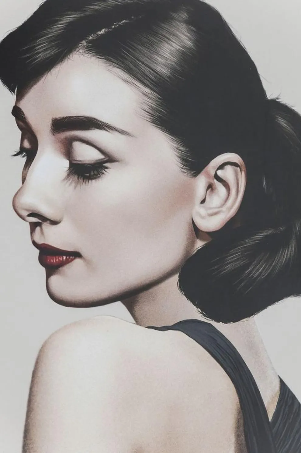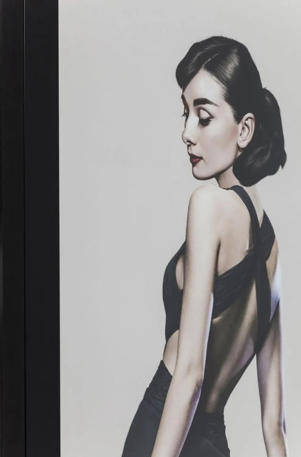 Dit schitterende achteraanzicht van filmicoon Audrey Hepburn strekt zich uit over de volledige afmetingen van 172×100 cm. Haar onvergelijkbare schoonheid is gevangen in deze foto en trekt alle aandacht.