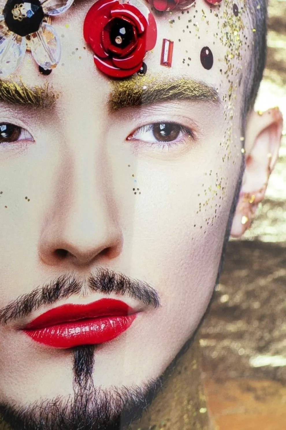Wandfoto Glass Metallic Flower Man 80×80 cm