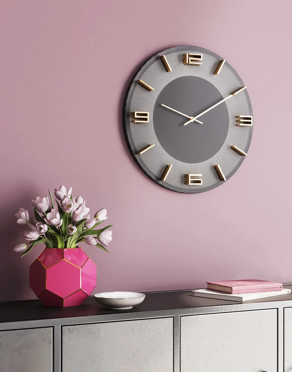 Het geheim van deze prachtige klok zit hem in het gebruik van hoogwaardige materialen. Het aluminium frame, gecombineerd met MDF en plastic, zorgt voor duurzaamheid en een luxe uitstraling. De grijze en gouden kleuren voegen een vleugje modern glamour toe aan elk interieur.