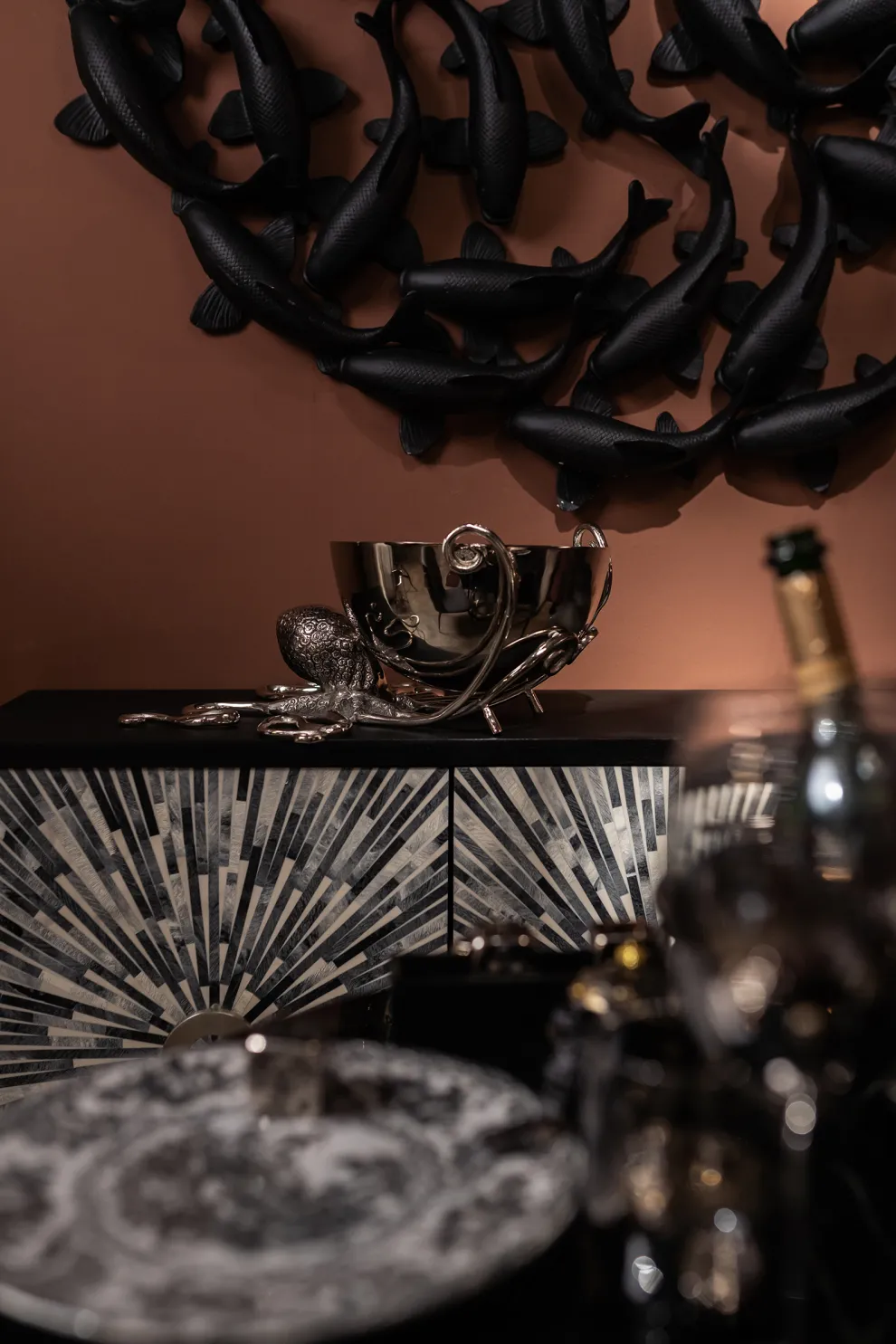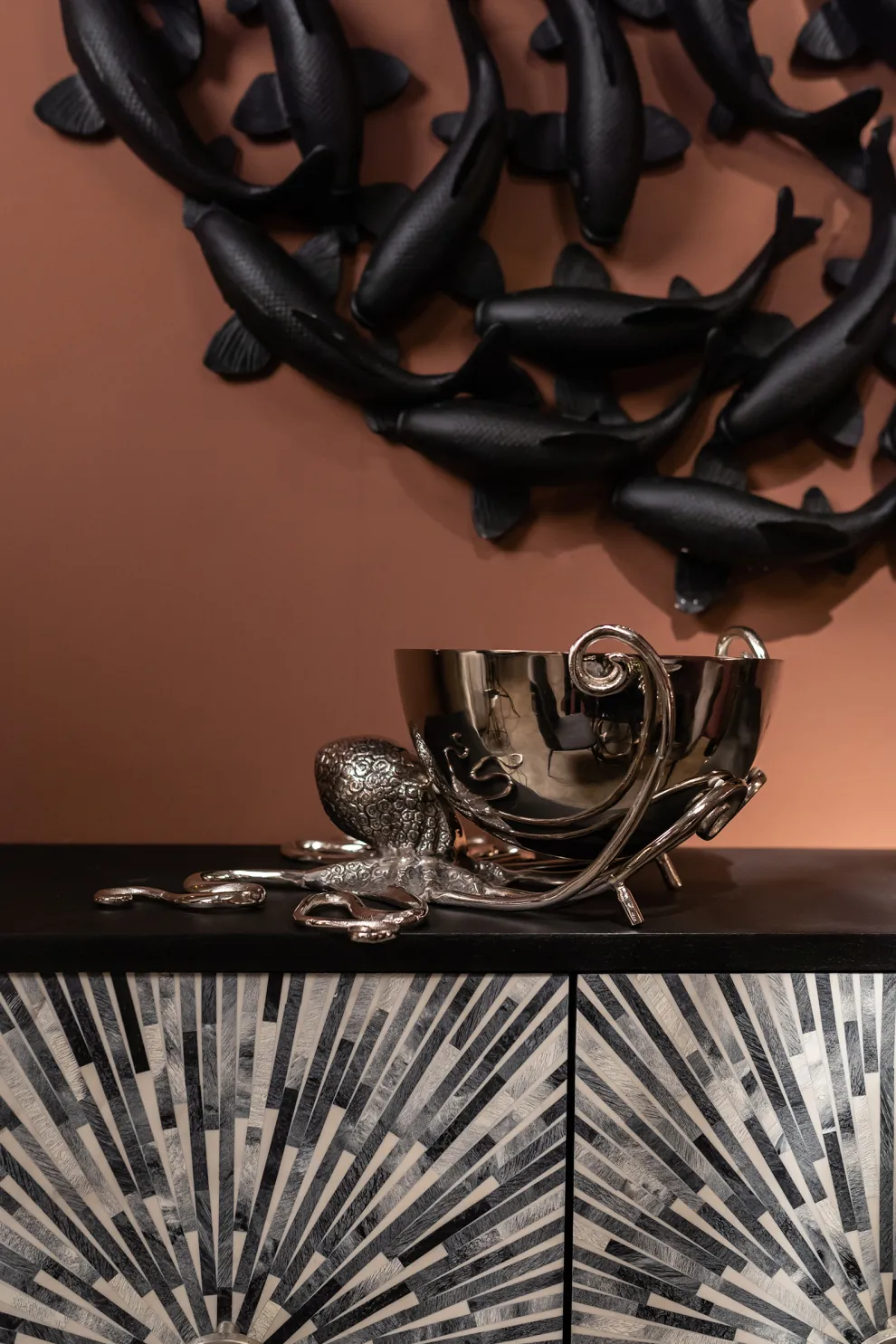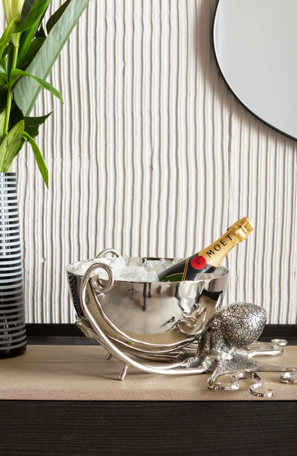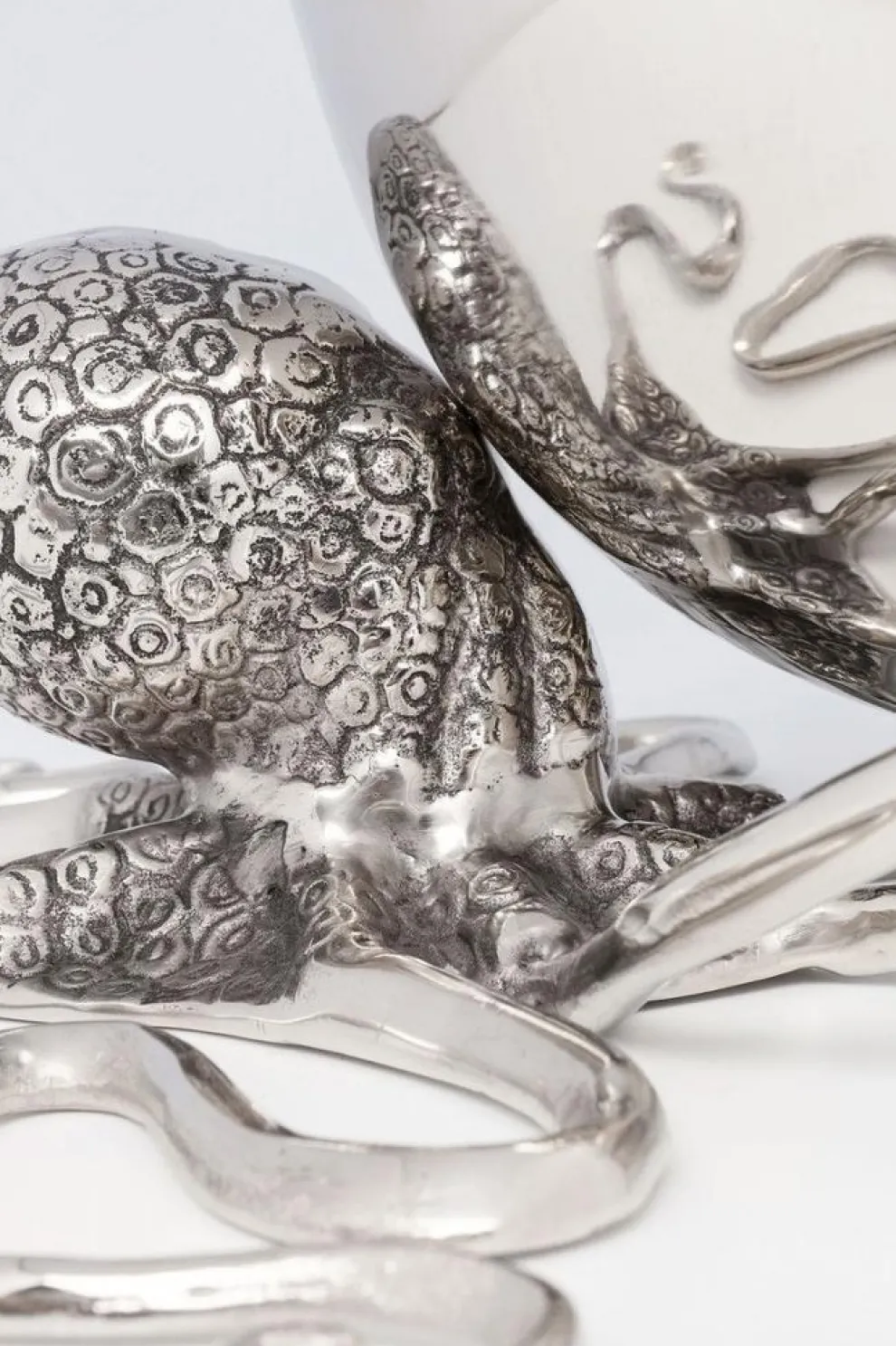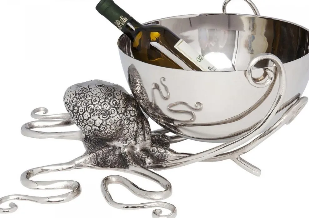 Deze octopus helpt graag een handje, of acht…. Speciaal voor tijdens jouw feestje, etentje of samenkomst met vrienden houdt hij een wijnkoeler voor je vast. Met een prachtig patroon en in zijn zilveren, glanzende kleur bewaart hij jouw drankjes goed en is hij tegelijkertijd een echte eye-catcher. Het enige wat nog mist zijn de ijsklontjes en een aantal flessen heerlijke wijn.